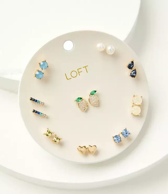 Starring the sweetest lemons - and sparkle, metallic and pearlized finishes - this stud earring set sweeps your jewelry box off its feet. Post back, Imported: Loft Lemon Stud Earring Set Pure Azure Women's by Loft Size Regular - One Size Pure Azure Women's Earrings, Jewelry