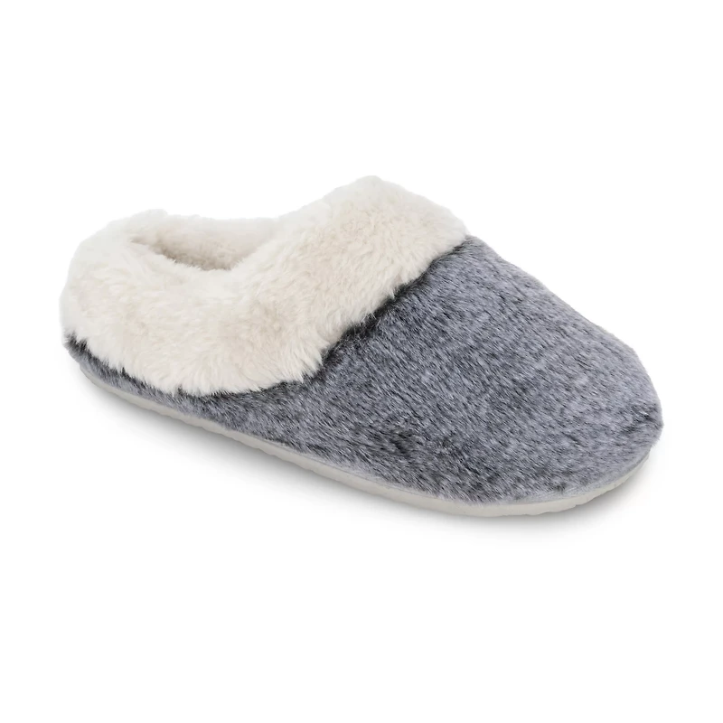 Available in Plus Size CLOSED TOEUPPER = 100% POLYESTER / LINING = 100% POLYESTER / SOLE = 100% TPR Available - S/M, M/L & L/XL Item Number: #414825 ". Plus Size Lemon Tipped Fur Scuff Slipper, in Charcoal, SM/MD, Women's, Cacique for Lane Bryant