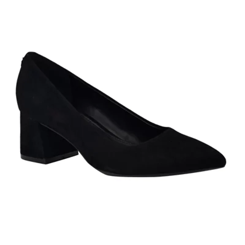 Amp up your style in the Calvin Klein Lenott dress pumps. The Lenott offers a clean and crisp finish to your everyday look. It features a block heel, pointy toe and slip-on silhouette. Founded in New York in 1968, the brand elevates everyday essentials to globally iconic status. -Material: Suede Slip-on Imported Product Specifications 1.97" heel Medium width Material Suede
