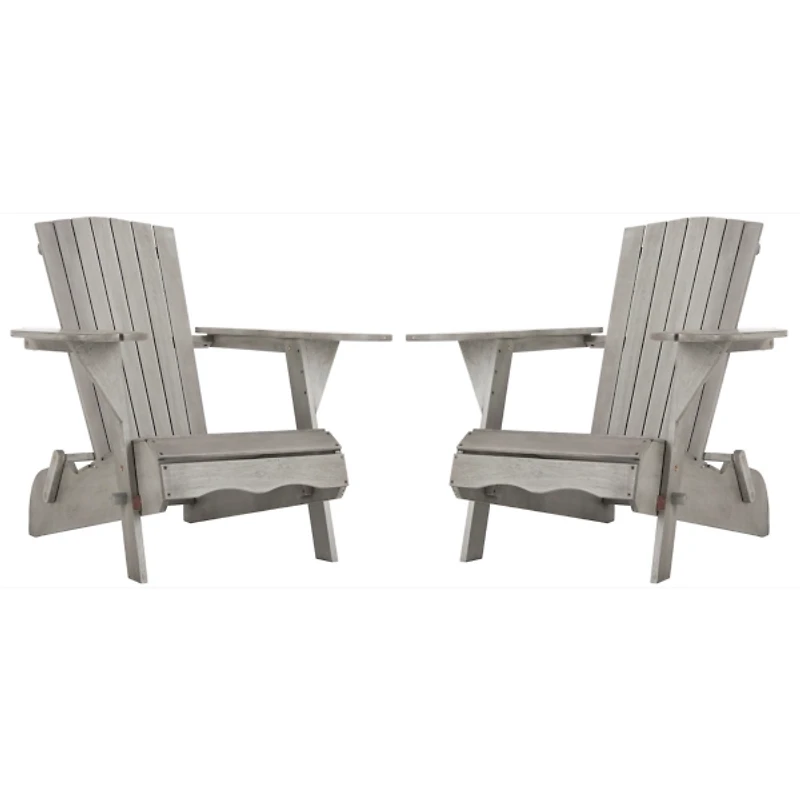 Leta Gray Wood Adirondack Chairs, Set of 2