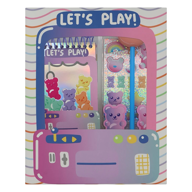 Get ready for class or journaling at home with this stationery set from Creatology. Featuring a colorful and sweet candy and gaming design, this set includes a notebook, stickers, erasers, and a pen.Details:Multicolor1 setPaper, plastic, and thermoplastic rubberFor ages 6 and upContents:1 notebook (72 sheets)1 sticker sheet2 erasers1 pen