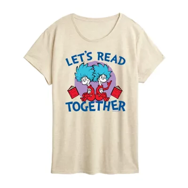 Lets Read Together Womens Crew Neck Short Sleeve Classic Fit Dr. Seuss Graphic T-Shirt