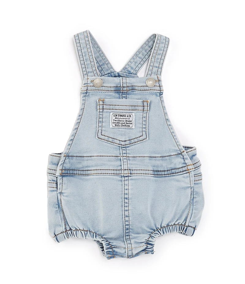 From Levi's®, this romper features: Square neckline Sleeveless Wide shoulder straps that button in front Bib pocket Two back pockets Elasticized leg openings Snap leg closures to make changing easy Cotton/polyester/elastane denim Machine wash/tumble dry Imported.