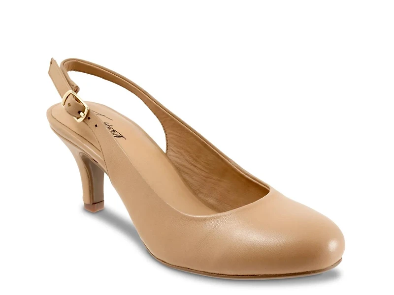 Step into polished confidence with the Lexi pump from Trotters. This sleek silhouette pairs a flattering almond toe with a graceful heel and an adjustable slingback strap, making it a versatile choice that moves seamlessly from office meetings to evening plans.