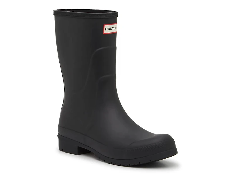 Don't let cloudy days hold you back! The Liberty rain boots from HUNTER make it easy to travel in any weather. This waterproof pair features a mid-length shaft height for adequate protection and a durable sole for extra traction. Complete with a simple pull-on style and the brand's name embossed along the back.