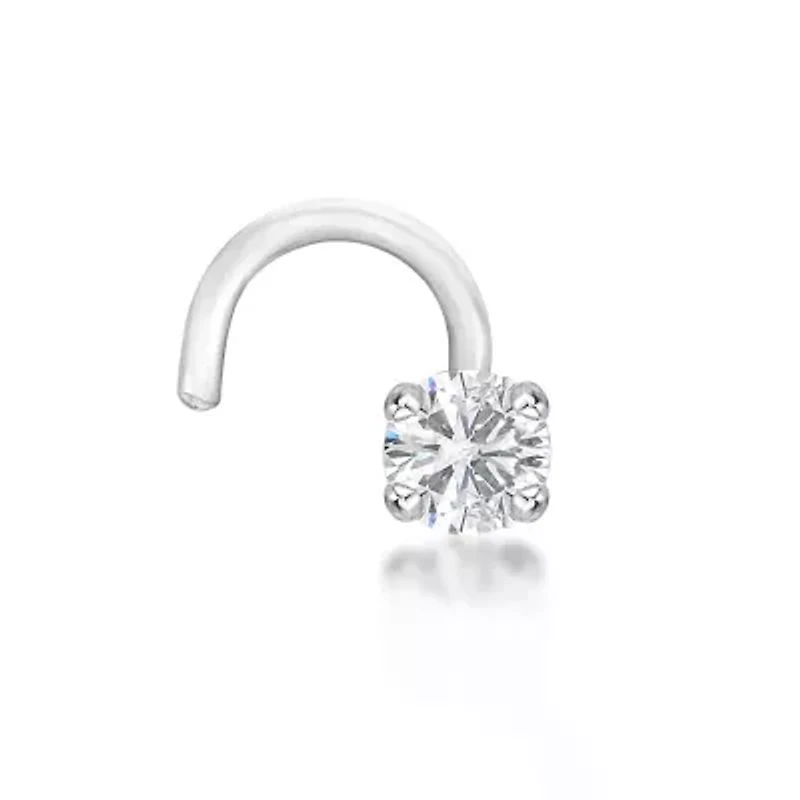 Add a touch of sparkle to your look with this 14k gold diamond accent curved nose stud, featuring a delicate round diamond set in a polished prong setting. Designed with a 20-gauge fit and finished in rhodium-plated 14k gold, this curved nose ring offers a refined shimmer and comfortable wear, making it a timeless addition to your jewelry collection. 1 Color rating: I, H Clarity rating: I1-I2 Polished finish Prong setting Choking hazard Thailand Imported Belk Exclusive Product Specifications 6mm 0.05 Material & Care Metal, White gold Clean with a soft cloth.
