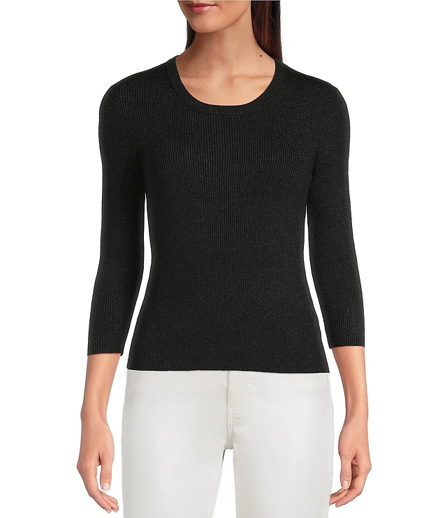 Lilly Pulitzer Esli Metallic Rib Knit Round Neck 3/4 Sleeve Sweater