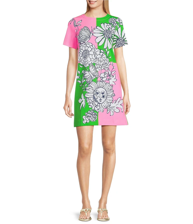 Lilly Pulitzer Siera Follow The Sun Print Crew Neck Short Sleeve Shift Dress