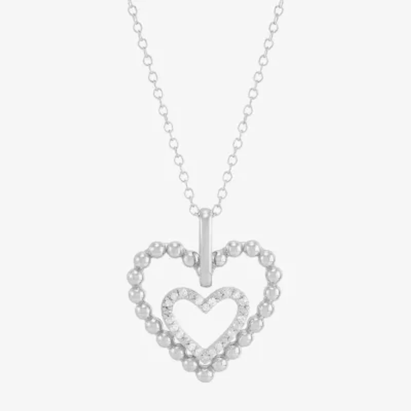 Limited Quantities! Womens 1/10 CT. T.W. Natural White Diamond Sterling Silver Heart 18 Inch Pendant Necklace
