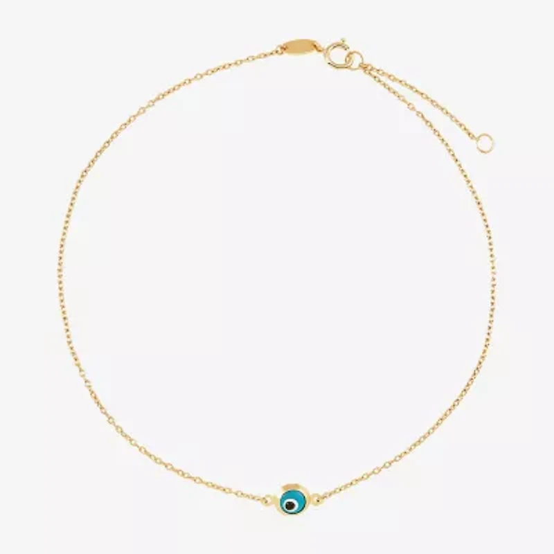 Limited Quantities! Womens 14K Gold 10 Inch Solid Cable Evil Eye Ankle Bracelet