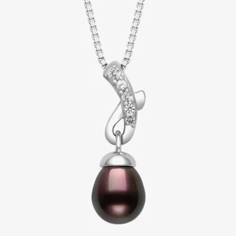 Limited Quantities! Womens Dyed Black Cultured Freshwater Pearl Sterling Silver 18 Inch Pendant Necklace