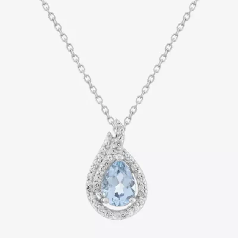 Limited Quantities! Womens Genuine Blue Aquamarine Sterling Silver Pear 18 Inch Pendant Necklace