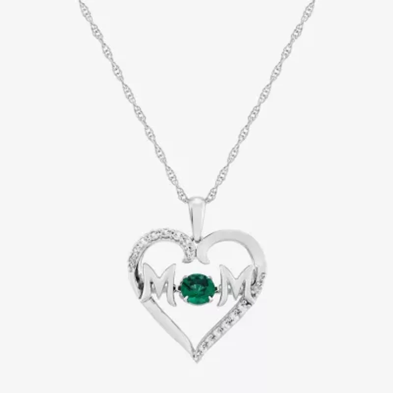 Limited Quantities! Womens Lab Created Green Emerald Sterling Silver Heart 20 Inch Pendant Necklace