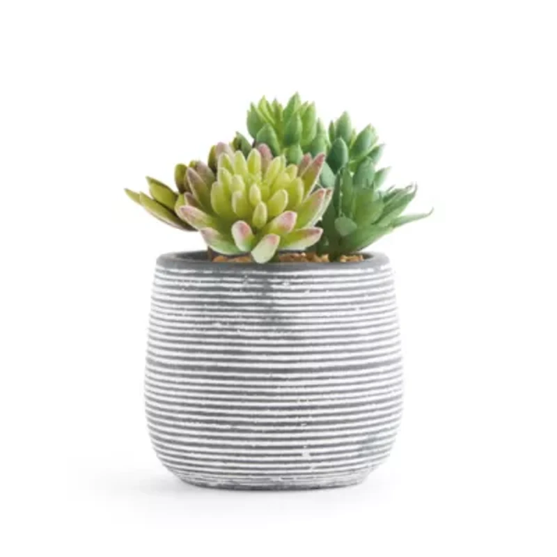 This Linden Street artificial mixed succulent plant is a gorgeous addition to any greenery feature in your home, or to place standalone on a shelf or table. This lifelike plant comes in a chic striped pot.