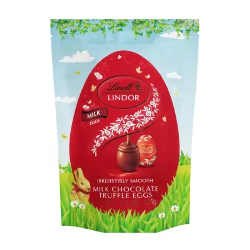 Classic Lindt milk chocolate truffles get decked out in their spring finest. The classic truffle with a fine milk chocolate shell and creamy chocolate filling is reimagined in an egg shape, perfect for easter baskets.