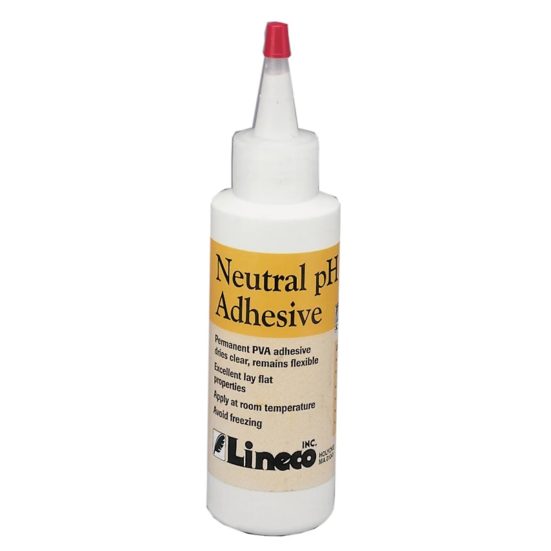 This adhesive has excellent lay-flat properties and dries clear for professional, finished work. While it sets fast, it can be remoistened with water for removal or repositioning. Formulated specifically for preservation materials, this adhesive remains durable yet flexible, and will not become brittle with age.Details:White4 oz. bottleAcid-freeDries clearPolyvinyl acetate formulaFormulated specifically for preservation materials