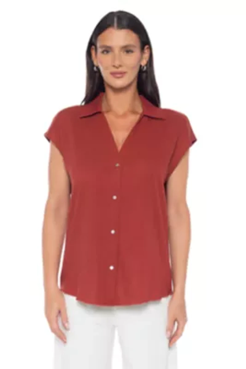 Linen Extend Sleeve Button Down Button closure V-neck Short sleeve Unlined United States of America Imported Product Specifications 27" Material & Care Viscose/ViscoseBlend Hand wash