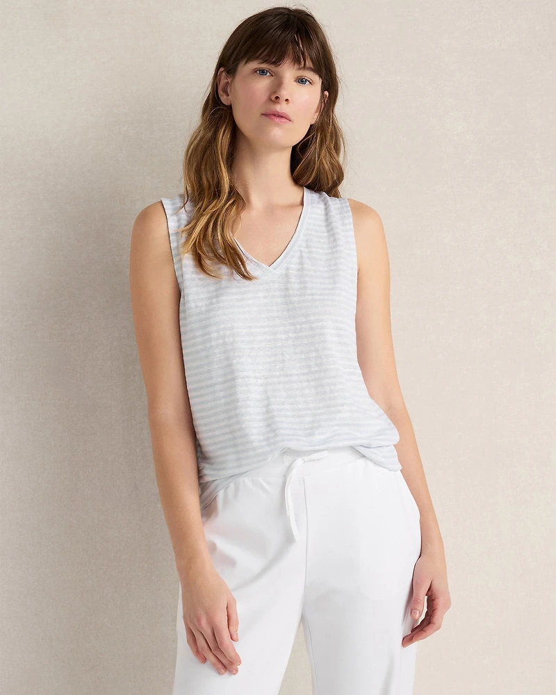 Linen Stripe V-Neck Top