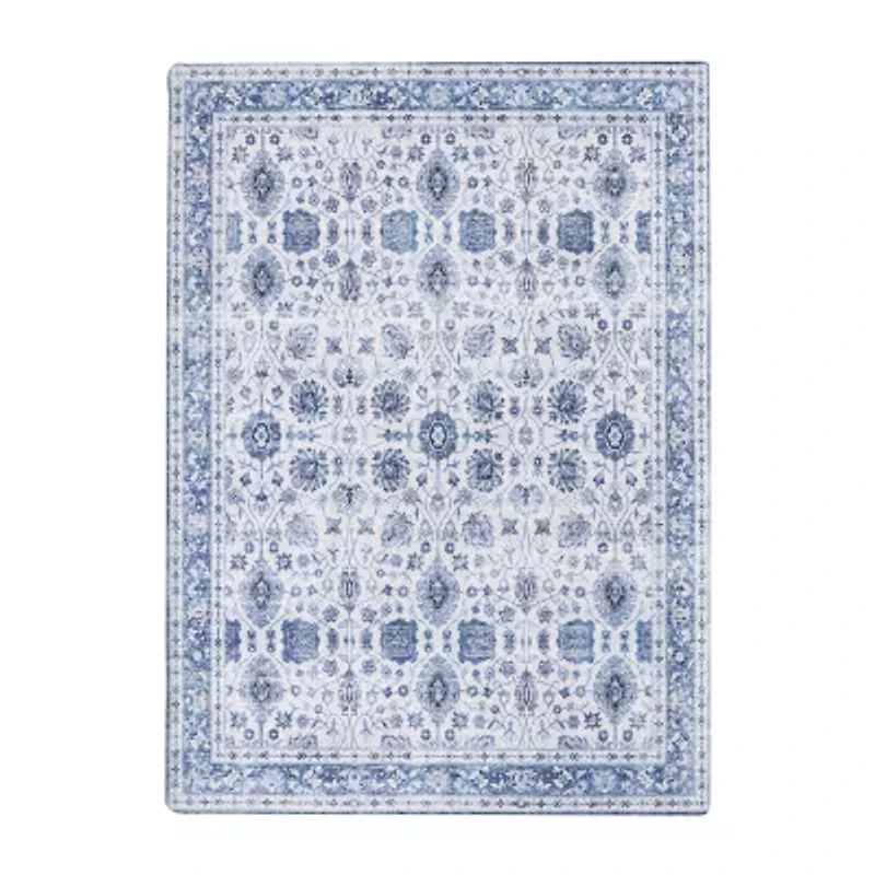 Transform your home's ambiance with a practical and charming machine washable rug, showcasing a vintage floral blue print. this rug complements your decor seamlessly while maintaining the durability needed for the demands of daily life. it's sturdy and perfect for active households with children and pets. the innovative design ensures straightforward cleaning and upkeep, providing a worry-free way to preserve a fresh and inviting atmosphere in your living space.