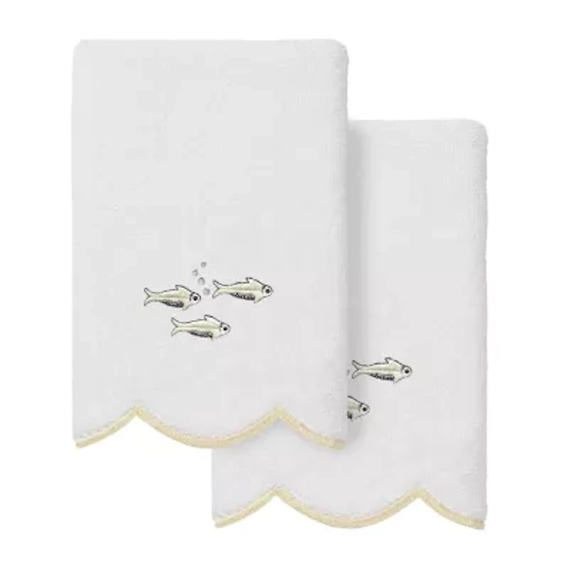 Linum Home Textiles Fish School Scallop 2-pc. Embellished Fingertip Towel