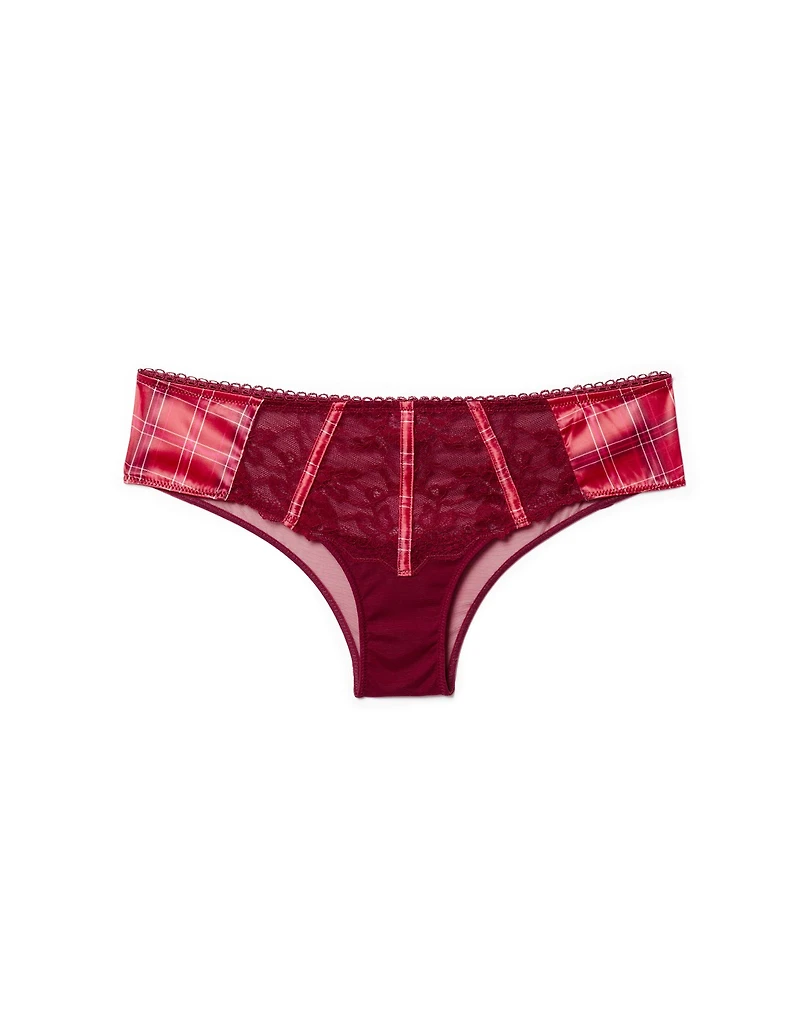 The Lisette Cheeky Plaid Red satin Cheeky is a romantic take on a classic silhouette, designed to make you feel effortlessly chic and comfortable. - Style: Cheeky Panty. (Available in sizes XS-XL.)