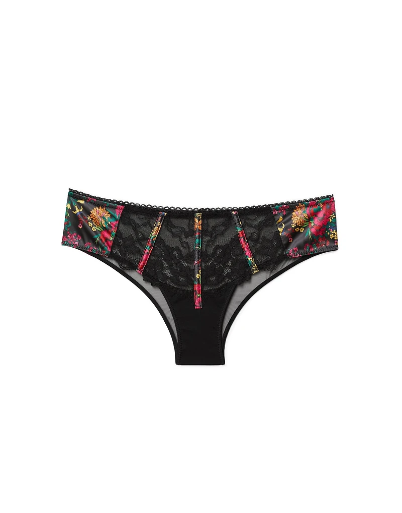 The Lisette Cheeky Floral Black satin cheeky is a romantic take on a classic silhouette. Effortlessly charming, this piece is designed with a flirty finish, bringing irresistible allure to your top drawer. (Available in sizes XS-XL.)