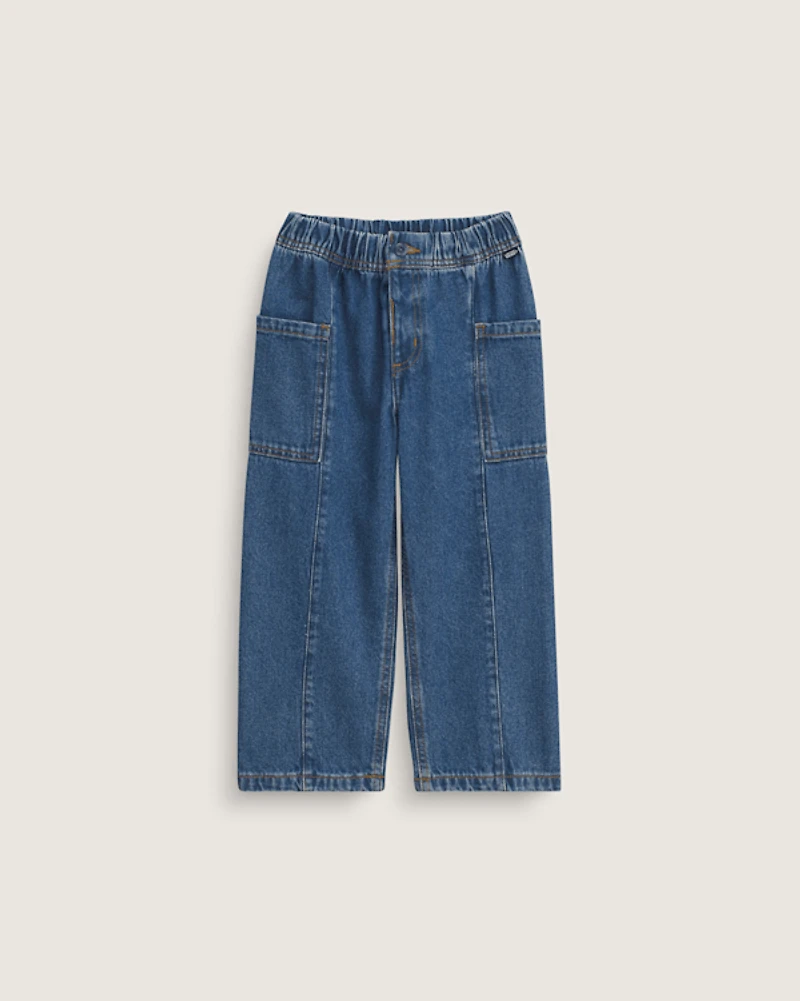 These loose-fit denim pants bring a relaxed vibe to your everyday look. The midweight denim has a bleached finish for a worn-in feel, while cargo pockets add utility. An elastic waistband with button closure keeps things comfortable and easy. Whether you're running errands or hanging with friends, these pants deliver effortless Vans style that goes with everything in your wardrobe.