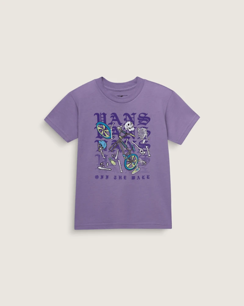 Keep it together in the Little Kids Shattered T-Shirt, a short sleeve crew neck T-shirt. Featuring carded ringspun fabrication for a softer, smoother shirt, it also has a glow-in-the-dark puff ink graphic of a skeleton scattered among Vans® logos on the front.