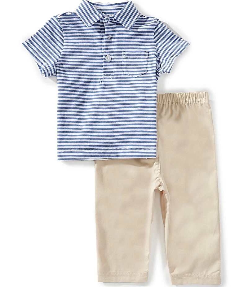 Little Me Baby Boys Short Sleeve Striped Polo Shirt & Solid Pants Set