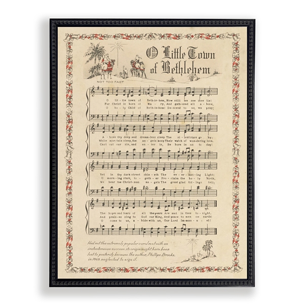 There's nothing that marks the beginning of the season like hearing your favorite Christmas song! The Little Town Bethlehem Christmas Hymn Wall Plaque features a sheet music design that adds a traditional, festive touch wherever it goes. Plaque measures 19L x 1W x 25H in. Crafted of wood Black frame finish with subtle texture Beige background finish Features a note sheet to the hymn "Little Town of Bethlehem" Hues of beige, black, and red Weight: 5 lbs. Hangs from back-mounted hardware Care: Dust with a soft, dry cloth. This item is available at Kirklands.com only, not available in stores. Please note: this item cannot be shipped to APO/FPO addresses.