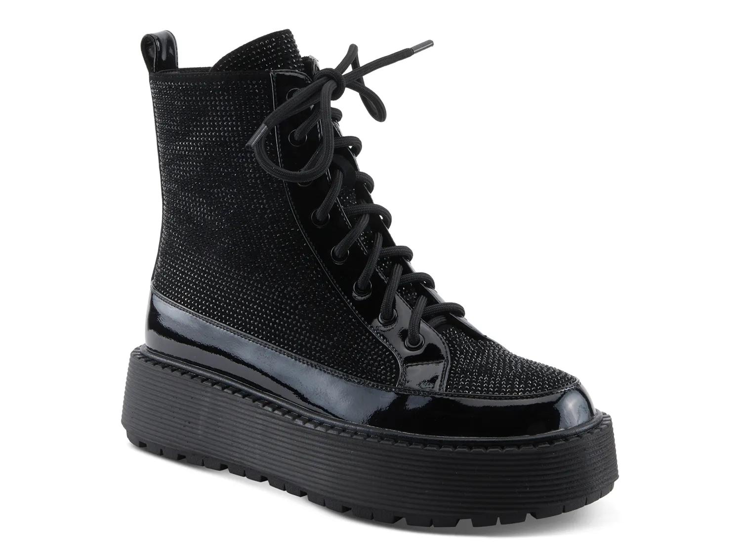 Heighten the mood in the Livewire platform bootie from Azura. The chunky sole combines with the sleek, rhinestone and patent upper for a bold add to your look, perfect for a night out or whenever you need a boost.