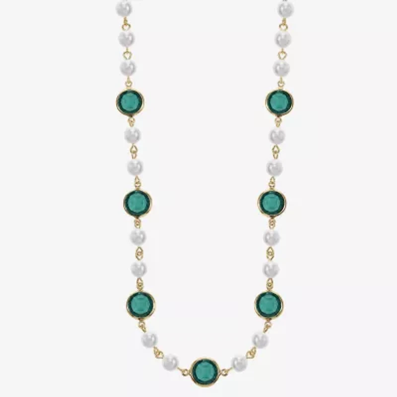Liz Claiborne Gold Tone Beaded Womens 17 Inch Collar Necklace