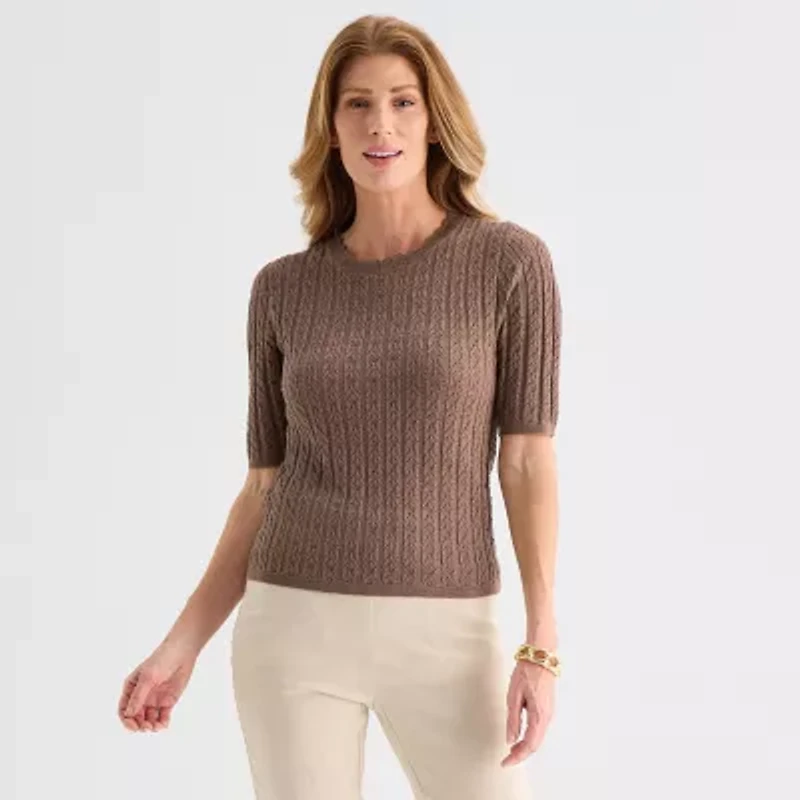 Liz Claiborne Tall Womens Scallop Neck Short Sleeve Pullover Sweater