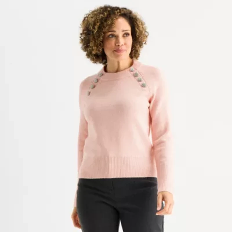 Liz Claiborne Womens Crew Neck Long Sleeve Pullover Sweater