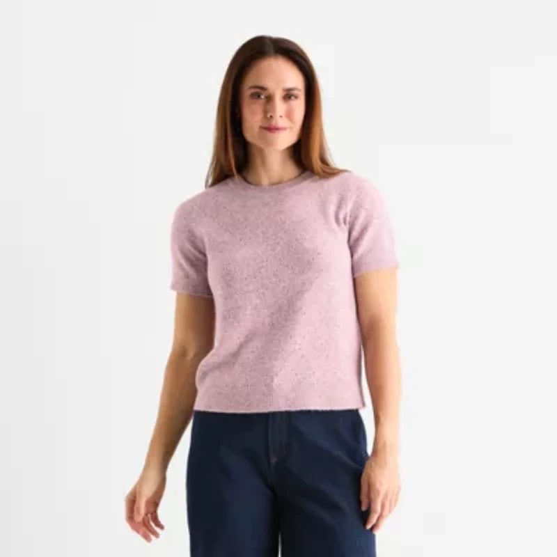 Liz Claiborne Womens Crew Neck Short Sleeve Pullover Sweater