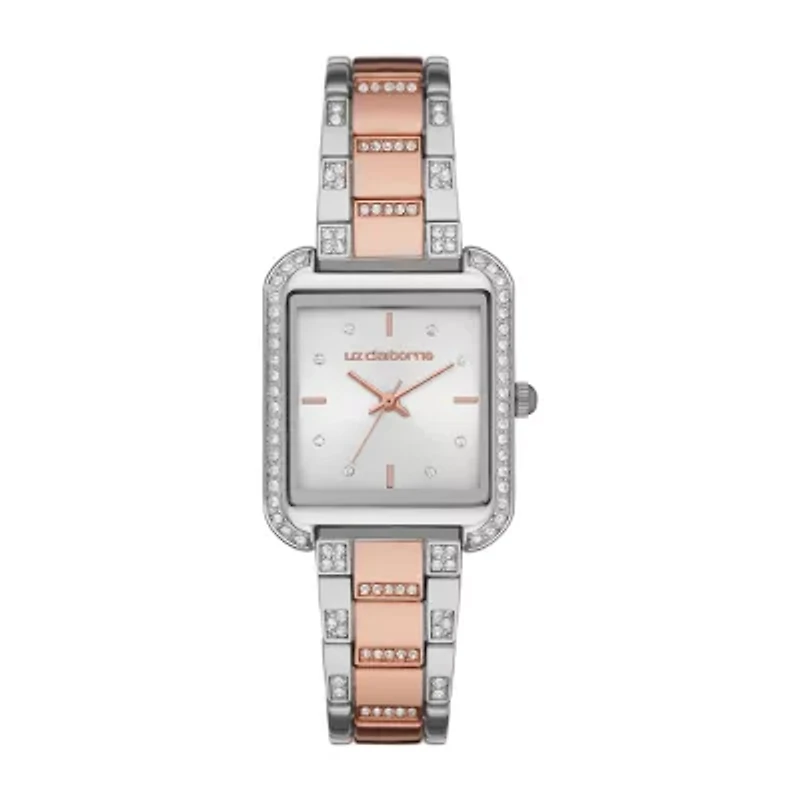 The Liz Claiborne Women's Harlow watch features allover two-tone silver and rose gold-tone plating with glitz detail and a silver tone dial.