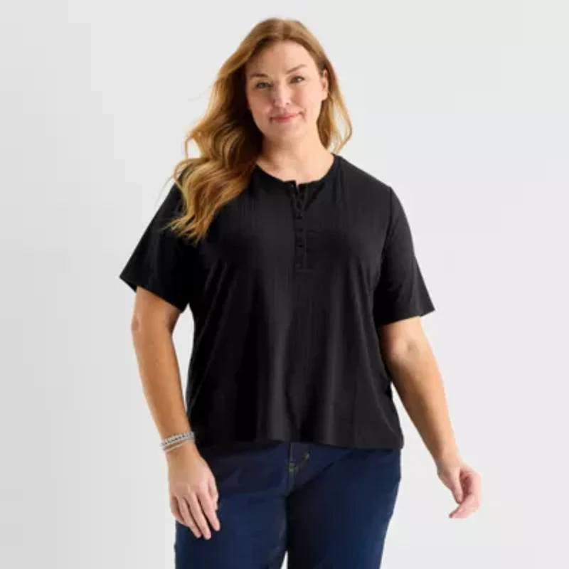 Liz Claiborne Womens Plus Short Sleeve Relaxed Fit Henley Shirt