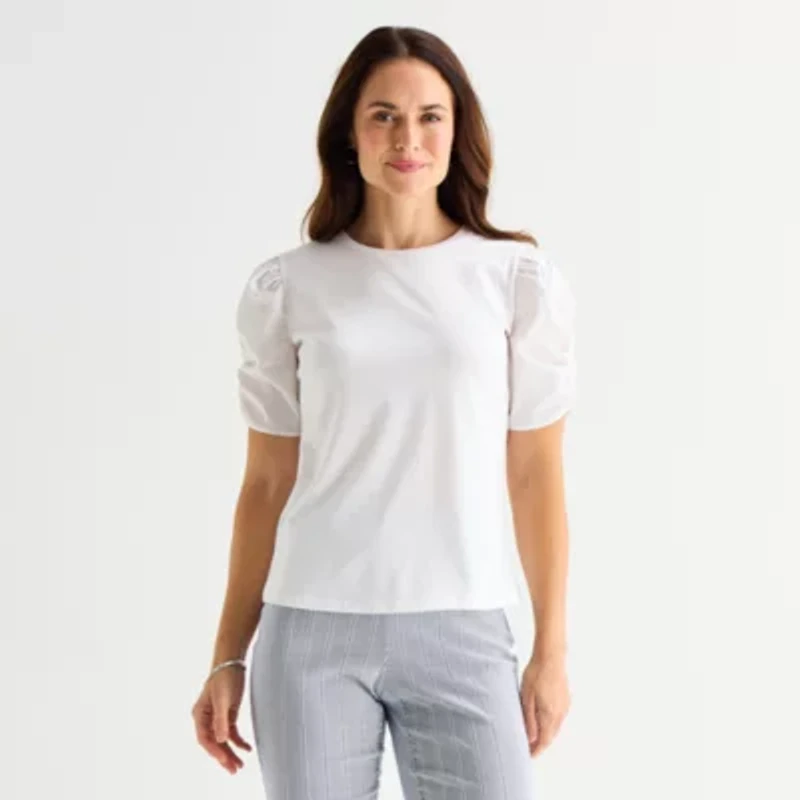 Liz Claiborne Womens Round Neck Short Sleeve Blouse