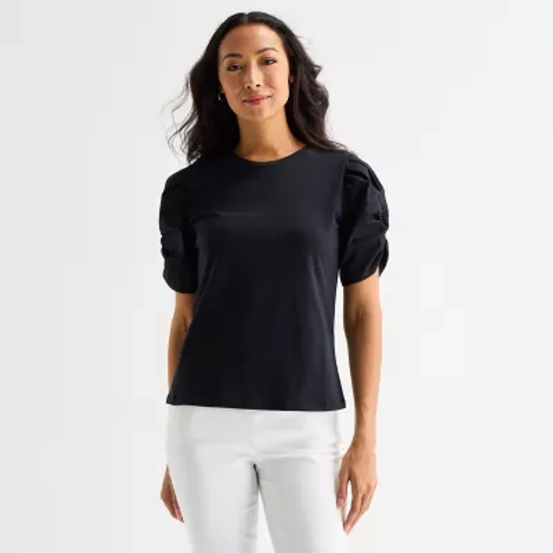 Liz Claiborne Womens Tall Crew Neck Elbow Sleeve Blouse