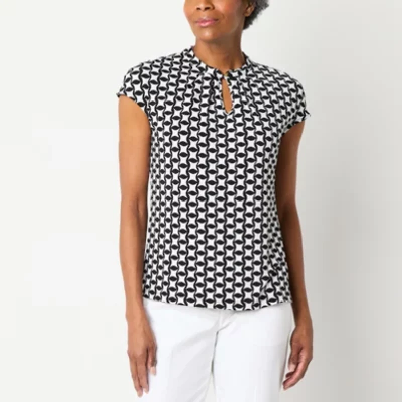 Liz Claiborne Womens Tall Keyhole Neck Short Sleeve Blouse