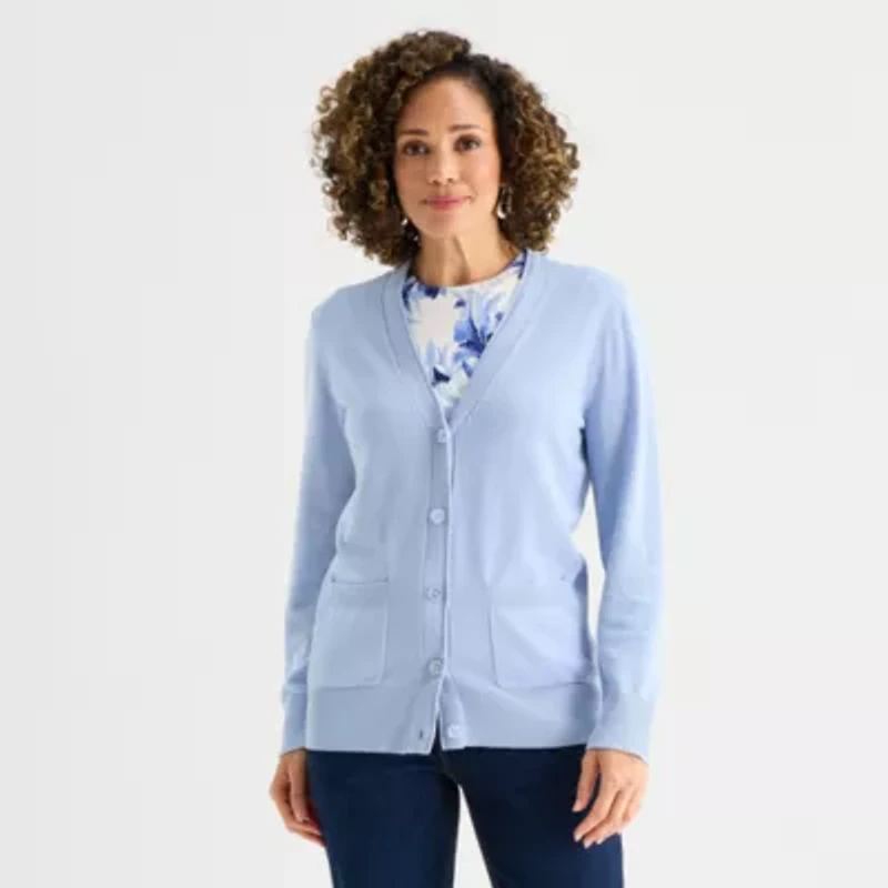 Liz Claiborne Womens V Neck Long Sleeve Button Cardigan