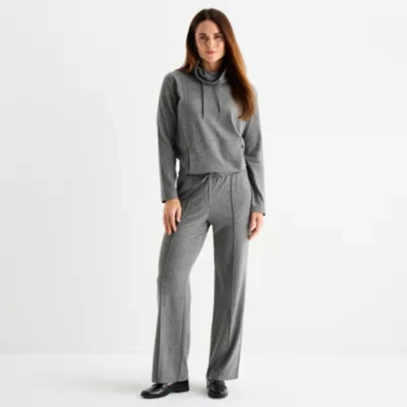 Liz Claiborne Womens Wide Leg Mid Rise Jogger Pant