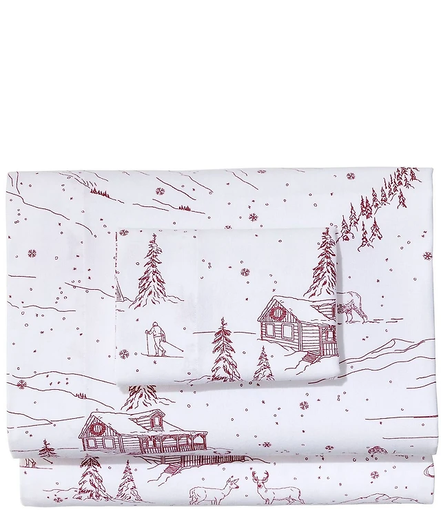 L.L.Bean Holiday Toile Pattern Flannel Sheet Set Collection
