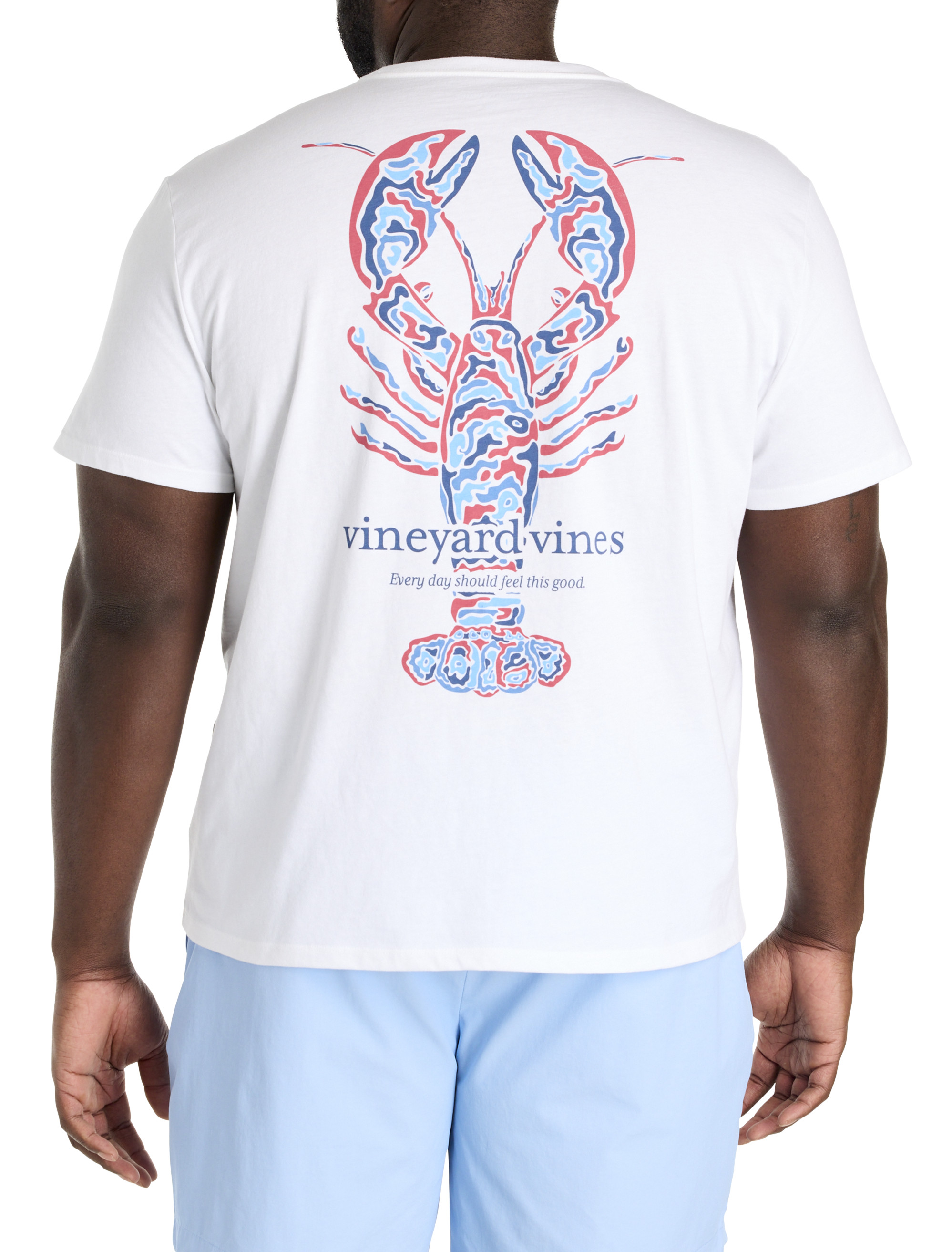 Let everyone know you're ready for summer in this lobster-print graphic tee from vineyard vines. Designed with proper proportions for Big and Tall guys, it's crafted in soft, 100% cotton with a relaxed, comfortable fit that allows for the freedom to move without restriction. With a screenprinted graphic at the left chest and on back, it's the perfect choice to "shell" out for a day of fun on the water.