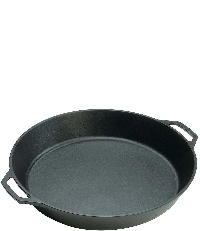 From Lodge, this Seasoned Cast Iron Dual Handle Pan features: We took our classic skillet and designed it with two dual handles for easy maneuverability. The naturally seasoned cooking surface is ready to go, straight from the foundry. You’ll reach for this pan for great heat retention and unbeatable durability—whether you love to cook indoors or out. Cast Iron Seasoned with 100% natural vegetable oil Great for outdoor cooking Cast to last for generations Compatible with any stovetop (including induction), oven, grill, or campfire Nontoxic cookware made without PFAS Hand wash Approx. 19.5"L x 2.62"H x 17"W Weight 13.53 lbs. Made in USA Product Disclosure