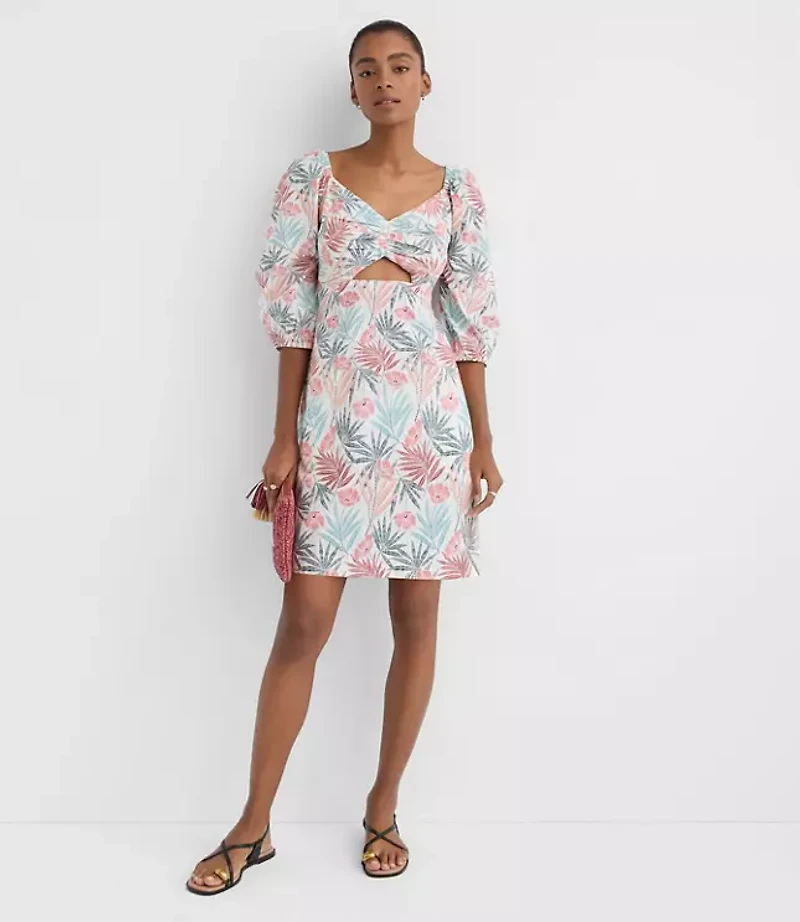 LOFT Beach Palm Linen Cotton Cutout Mini Dress
