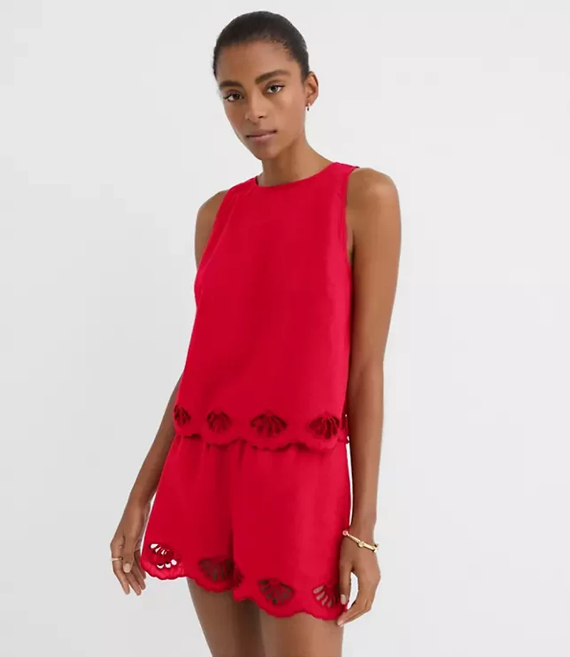 LOFT Beach Seashell Embroidered Linen Cotton Tank Top