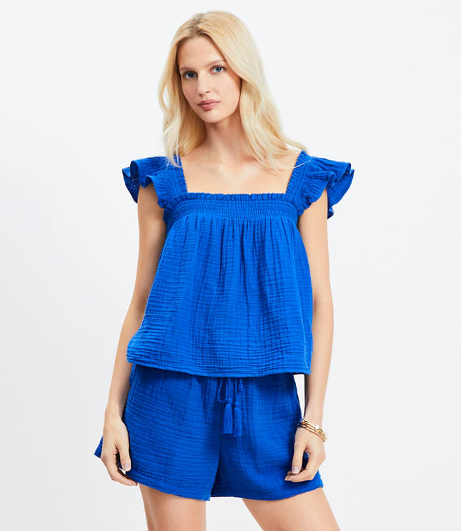 LOFT Beach Triple Cloth Ruffle Strap Top