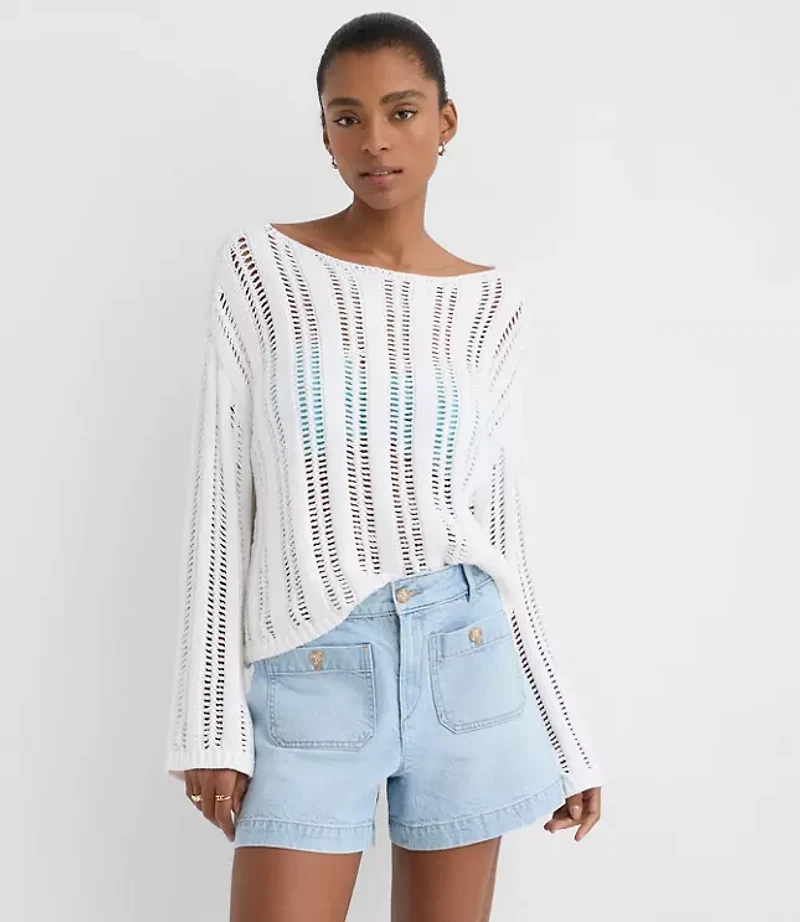 LOFT Beach Striped Open Stitch Boatneck Sweater