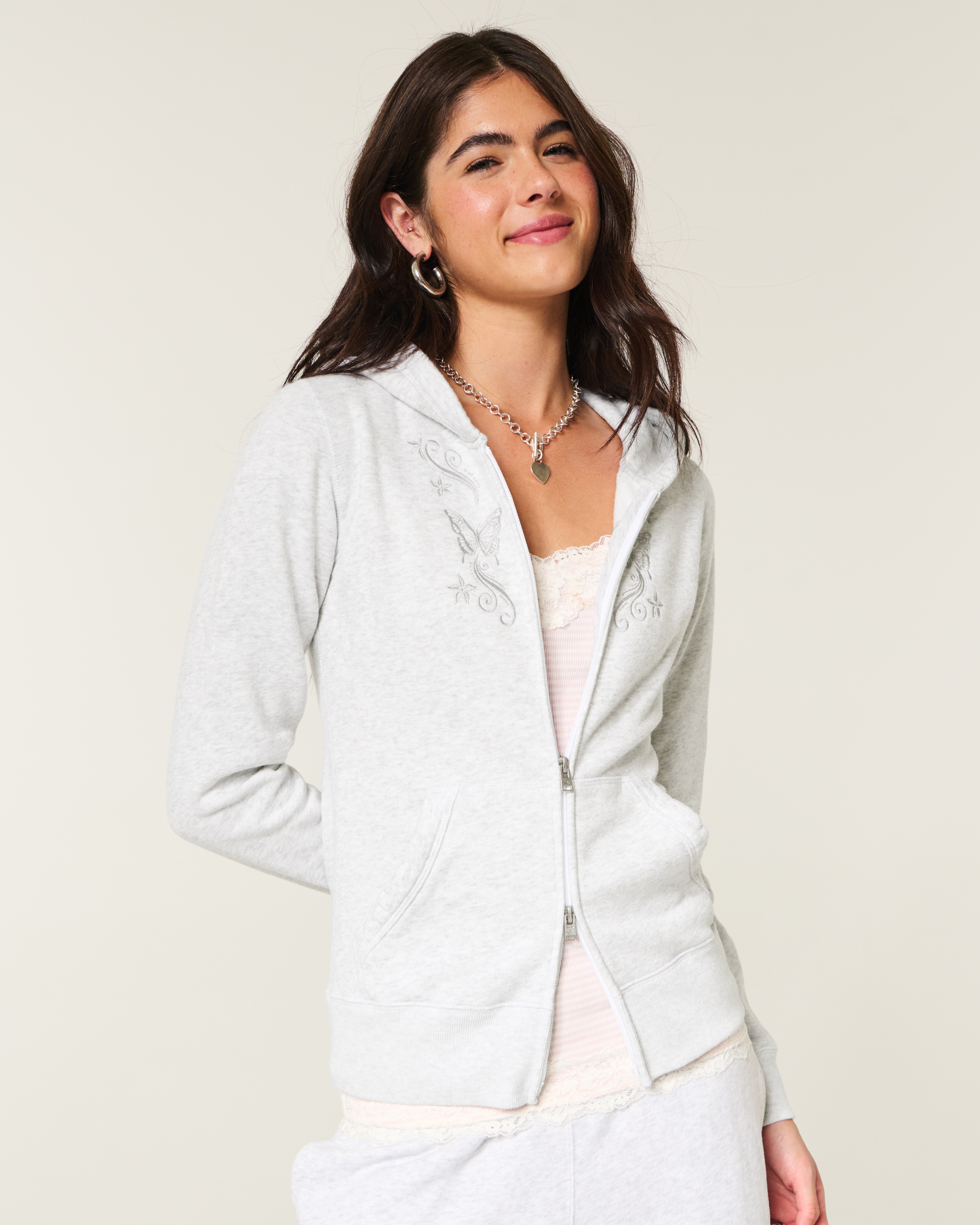 Hollister Feel Good Butterfly Graphic Zip-Up Hoodie